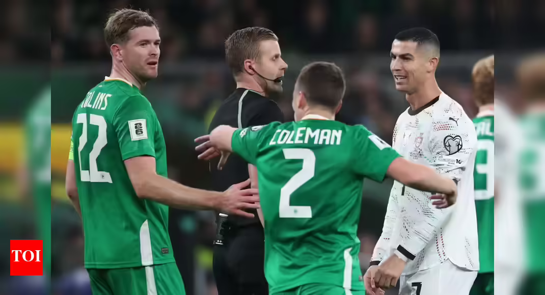 Referee Glenn Nyberg talks with Cristiano Ronaldo during the 2026 World Cup Group F qualifying soccer match. (Credit: AP Photo/Peter Morrison) Cristiano Ronaldo faces a potential three-week wait to learn the extent of his FIFA ban following a red card incident in Portugal’s 2-0 loss to Ireland on Thursday. The Portugal star could face a two- or three-match ban for elbowing Ireland defender Dar O’Shea during a 2026 World Cup qualifier.FIFA usually takes three weeks after the qualifying rounds to issue global disciplinary decisions, including red cards and incidents of crowd disturbance. Although there is less of a time crunch now that the World Cup is not played until March, Ronaldo’s case has received considerable attention.FIFA declined to provide a specific timetable for a decision on Friday. The mandatory one-match suspension will be served when Portugal host Armenia on Sunday, where victory would see them reach the World Cup finals in the United States, Canada and Mexico.FIFA disciplinary rules call for a minimum two-match ban for foul play or a minimum three-match ban for violent conduct. These additional matches must be played in World Cup competition, assuming Portugal qualify, rather than friendlies.The incident occurred around the 60th minute at the Aviva Stadium when Ronaldo turned and elbowed O’Shea in the back with his right elbow while waiting for a cross. The referee initially showed a yellow card, but changed it to a red card after reviewing the incident on the monitor.“I don’t think it’s the elbow, I think it’s the whole body,” Portugal coach Roberto Martinez said. “Obviously, when he’s trying to get away from the defender, I think the action looks worse than what it really is.“But from where the camera is, it looks like an elbow,” Martinez added. “We accept it. It might be a red card, but for the right reasons.”FIFA’s disciplinary committee must now decide whether Ronaldo’s actions constitute a serious foul or violent behaviour. Martinez defended Ronaldo’s overall disciplinary record, noting that it was his first red card in an international game.“He is simply a captain who has never been sent off in 226 games before,” Martinez said. “They grabbed him, pulled him, pushed him. I think it was a little rough because he cares about the team.”FIFA’s decision could come after the Dec. 5 World Cup draw, which will determine each team’s group-stage opponents.Aged 41 in February, Ronaldo is looking to make history by appearing in his sixth World Cup tournament, a milestone his rival Lionel Messi is also hoping to achieve. Messi has received two red cards in his international career – one on his debut for Argentina in 2005 in a friendly against Hungary and the other in the 2019 Copa America third-place match against Chile.