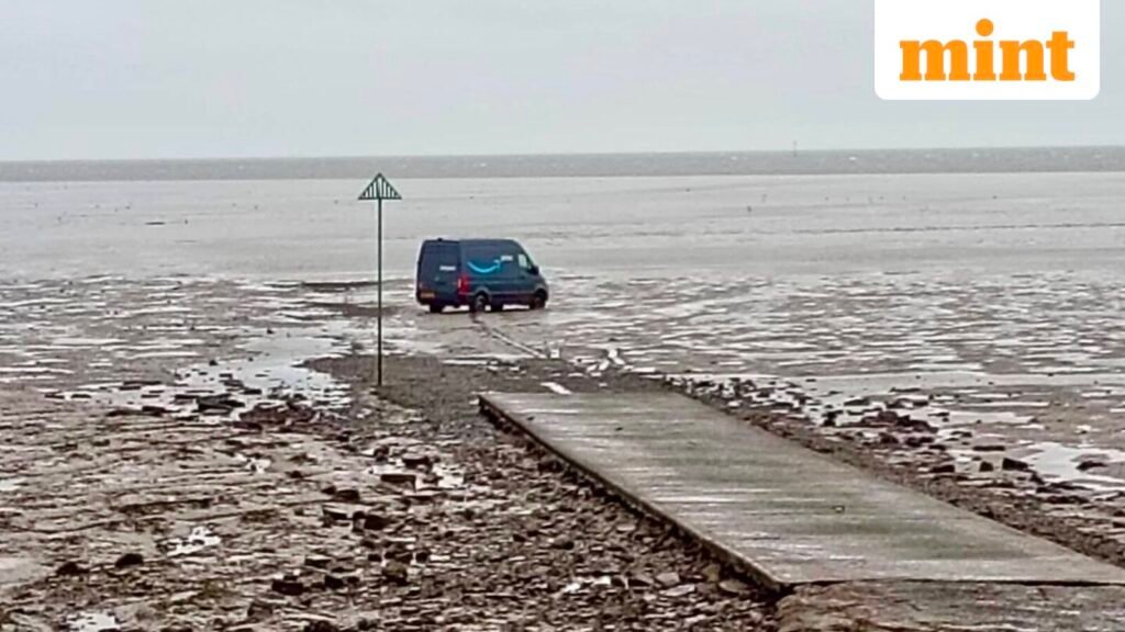 A routine delivery in the UK took a dangerous turn after an Amazon driver followed GPS directions to a tidal route, forcing them to abandon their van as rising waters cut off their escape, the New York Post reported.